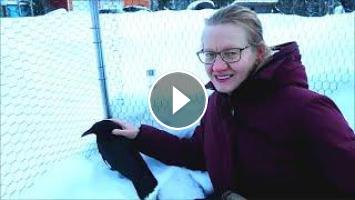 Also someone is back at home! The crows and magpies have so much fun in the aviary and when it is not to cold, we bring them out to have some fun.