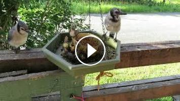 J'ai donné des vers de farine aux Geais bleus le 26 juillet 2022. Il y avait 58.7 grammes dans une petite mangeoire. Les juvéniles vont découvrir un nouveau met. Ils ont de la difficulté à décortiquer le tournesol noir. Alors pour eux les vers congelés sont un régal. Mais ils dégèlent rapidement à 23 Celsius à Saint-Fabien-de-Panet.