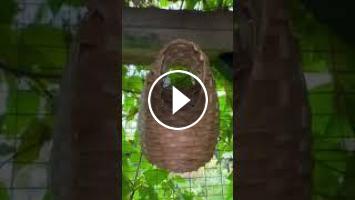 different weaver bird species in outdoor mix bird aviary. softbills breeding. bird nest building.