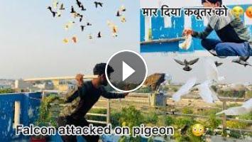 बाज़ ने कबूतर पर हमला कर दिया ???? !! Falcon attack on pigeon !! सभी भाग गए