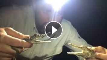 These baby freshwater crocodiles call for their moms while I'm holding them. I have to hurry just in case mom shows up!