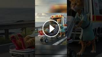 Mr. and Mrs. Orange Cat were walking on the beach, but they met three arrogant black cats and had an accident. Fortunately, in the end, they all got their due results.