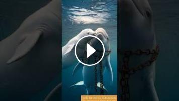 Beluga Whale Mother Trapped By Old Anchor, Saved By Her Baby And Kind Sailors team #animalrescue