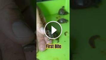 Our tiny hatchling Eastern Box Turtle just learned how to bite — but instead of going for the worm, he went for my finger! ???????? Watch this adorable (and funny) first bite moment.