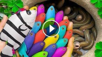 In this video, you’ll see the process of catching a variety of bright and beautiful freshwater ornamental fish — including Raphael catfish, Koi fish, Betta fish, Glofish, and cute baby turtles found inside giant colorful eggs. ????????