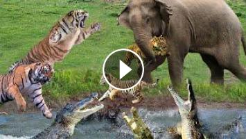 Baby Tiger Attacked By Mad Elephant And Fell Into Crocodile Lagoon - Mother Tiger To Save Her Baby