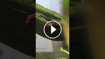 My Red And white Shrimp Feeding On Bogwood With Light Blue Shrimp #shrimp #shrimptank...