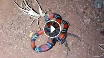 Cheguei da Faculdade, e flagrei uma predação em andamento de uma Coral do Sul ("Micrurus frontalis") com um Calango de Lava Amazônico ("Tropidurus torquatus") no Jardim de Casa.