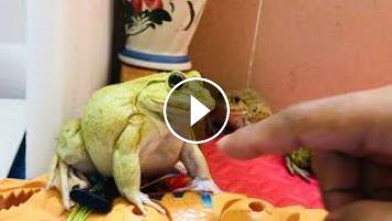 Frog vs fingers screaming frog funny bullfrog rip my fingers...
