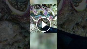While freediving I see a giant clam and decide to try to open it underwater, the giant clam slowly opens and you can see how beautiful and colorful it is inside.