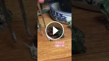 いつもより一回り大きなコオロギが届いてしまい、体の小さな子ガエルたちには、生き餌の手足を○って食べさせています????