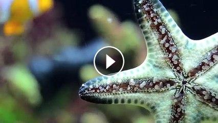 Walking Chocolate Chip Sea Star on Salt Water Aquarium Glass...
