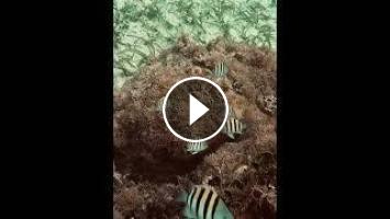 Underwater environment with sergeant major fish on living coral in Carribean....