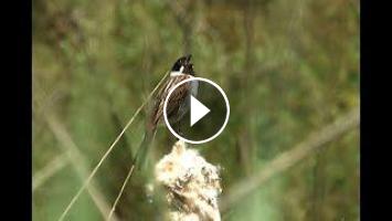 9-6-2021, Starrevaart (Nederland). Rietgors Emberiza schoeniclus, zingend mannetje / singing male Chordata (gewervelde dieren, chordates, Chordatiere,...