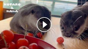 今が旬のサクランボをカワウソ達にもちょっとお裾分け。プロフェッサーコタもジャグラーハナも食べはしないもののご機嫌に転がしまくって遊んでましたが、弄りすぎてすぐにグニャグニャに。代わりにミニトマトで騙せるかと思いきや、すぐバレました。コタハナは中身に興味がないので大丈夫ですが、犬や猫や人間の皆さまチェリーの種は噛み砕いて食べないように気をつけてくださいまし。