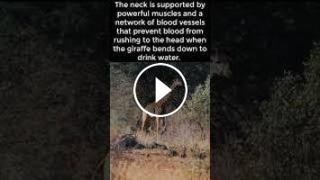 Giraffes' long necks consist of only seven vertebrae, just like humans, but each vertebra can be over 10 inches (25 cm) long. The neck is supported by powerful muscles and a network of blood vessels that prevent blood from rushing to the head when the giraffe bends down to drink water. Despite their height, giraffes have a relatively small heart that has to pump blood up the long neck against gravity. To compensate for this, giraffes have a very high blood pressure, which is two to three times higher than that of humans.