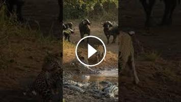 Leopard and Buffalos in water hole #wildlife #animals #wildanimals #documentary