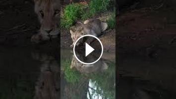 Lion Drinking with Mirrored Reflection #lion #drink #reflection #mirror #nature #wildlife HA03632