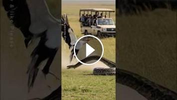 सवाना के मैदान में सचिव पक्षी का सामना एक साँप से होता है।