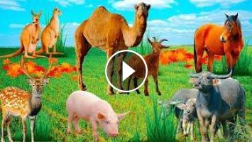 This video learn about Animals, Domestic Animals Wildlife Animals, Farm Animal Sounds, - Cow - Duck - Horse - Cat - Rooster, Invertebrates, Reptiles, Kangaroo, Birds, Fish, Amphibians, Mammals, Wild Animals, Etc with Animals Name.