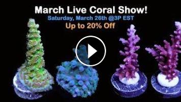 This live coral sale features premium, captive grown SPS Frags. Corals will be discounted during the live show through Tuesday, March 29th.