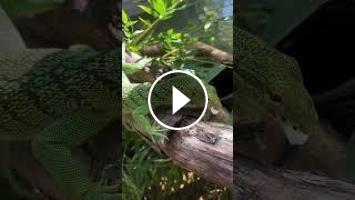 Smart Lizard eats a QUAIL EGG! Green Tree Monitor (Varanus prasinus) #shorts