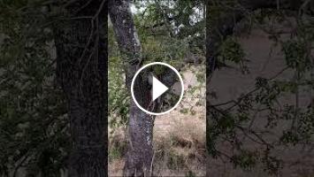 Unreal sighting of the Nchila male who hastily hoists an Impala carcass to avoid a lurking Hyena. The Hyena had other ideas as it leapt into the tree to pull the Impala down.