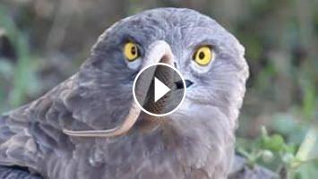 A Brown Snake Eagle gulps down a living snake, bit by bit!????