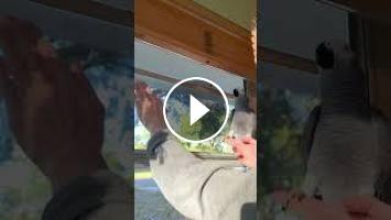 Apollo our African Grey Parrot reacts to a moth in the house. #birds #africangrey #parrot #shorts #fyp #pets #animals #funny #cute #reaction...