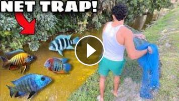 In today's video, we found a tiny creek FILLED with exotic aquarium fish! We used our cast net fish trap and caught wild African cichlid hybrids, colorful Mollys, and other rare fish! These fish we caught were perfect for my fish tanks and backyard ponds so I made them my new pets!