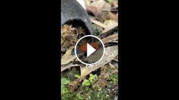 My male blue jeans poison dart frog (Oophaga pumilio) eating springtails.