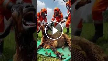 Goat surrounded by honeycomb bees saved by rescuers #humanity #animals #goat #rescueanimals