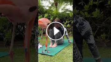 Your one friend who is always up for sunrise yoga! ✨???????? (Via - Heather B.) #Shorts #Flamingos #Wildlife #CuteAnimals #PetParents #AnimalLovers #Yoga