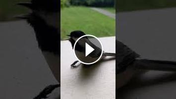 Rush hour at the bird feeder. This little Carolina Chickadee knocked himself silly trying to compete with the big boys. He's fine....