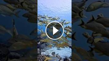A school of fish is a common sight in the waters of Playa del Carmen, especially around coral reefs, the clear waters and strong currents of the area contribute to the formation of these schools, providing divers with impressive views of marine life in action.