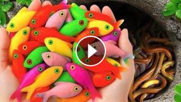Wow Satisfying Catch Colorful Aquarium Fish In Small Pond, Platinum Guppy, Pencil Fish, Angel Fish