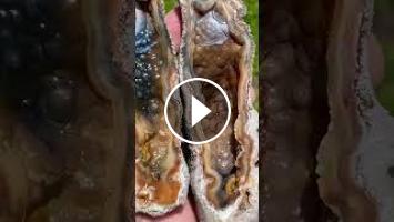 Cutting ancient coral agate geodes that I find in Florida! Super rare blue one right here #SHRKco