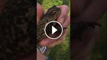 En partant à la cueillette des escargots pour nourrir les poules,, je découvre un gros crapaud que je montre à Maxou apeuré sur l’instant !