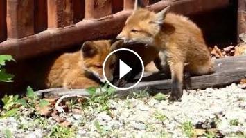 Baby Fox. Rot Fuchs Nachwuchs (Vulpes vulpes) Junge Füchse. Mega Zoom 60-fach optisch. Lumix fz82/83