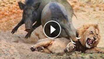 Weird... Mother Warthog Biting Lion's Head To Rescue Her Baby - Warthog Vs Leopard, Hyenas.