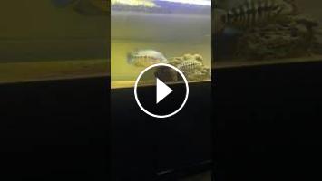 Gold dovii (Parachromis dovii) male sparring with Venustus (Nimbochromis venustus) male 30.06.2022