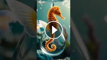 Dive into a breathtaking miniature ocean world with this Pixverse-style animation of a tiny baby seahorse, floating gracefully through a glowing coral reef. ????✨