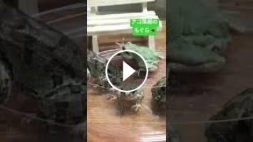 飼育アマガエルのそら豆おじいちゃんと、アゴ風船のもぐら氏が仲良く生餌の昆虫を食べるシーン♪