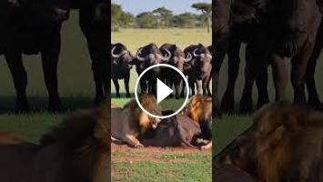 - lion vs buffalo, lion attack buffalo, buffalo herd
