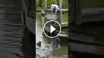 Massive American Alligator jumps for a treat #reptiles #alligator #americanalligator #snack #shorts