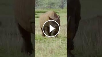 A mother rhino charges and male lion to protect her calf.