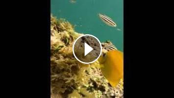 Such a bright beautiful yellow color as a small 2 inch long juvenile Atlantic blue tang, then as adults they are a strikingly beautiful blue color. These juveniles are a little difficult to photograph and video since they are small and move quickly.