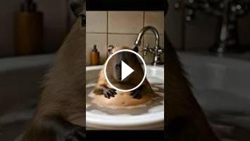 Capybara needs to take a bath after playing in the garden #capybara #cute