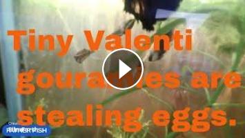 Valenti gouramies scavenging betta eggs as they are produced.