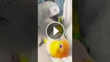 Ophelia is around, just chillin' looking out the window. Apollo has taken over as Soleil's playmate. #play #wrestling #africangrey #birds #parrot #fun...